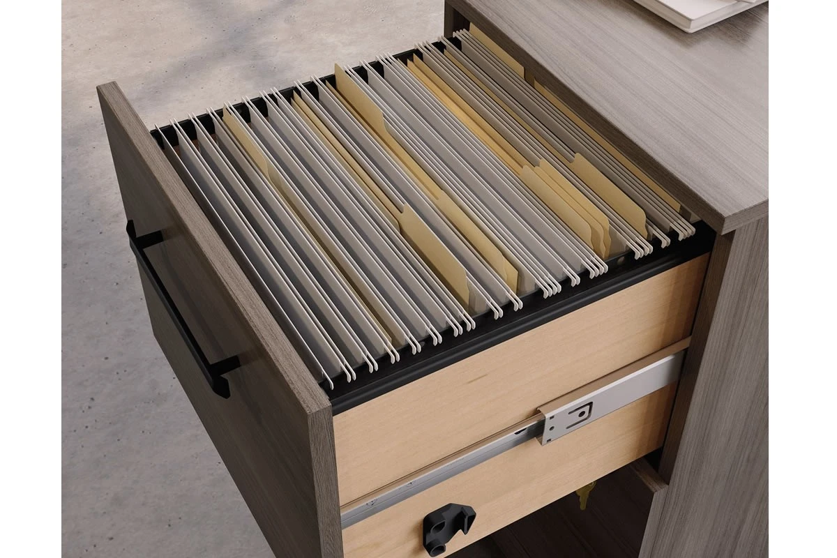 - Drawers with full extension slides hold letter, legal or European-size hanging files