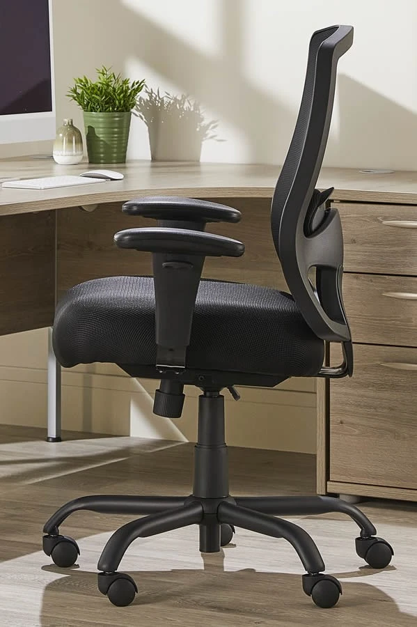 The Atlas Bariatric operator chair has been specially designed for the larger user. The chair features enlarged proportions and has been tested to support up to 32 stone/204 kg/500 lbs.