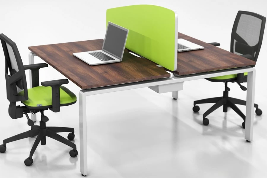 The Aura Beam 2 Person Rectangular Bench Desk range also has an ingenious leg design that allows you to use the desk space more efficiently and flexibly. Whether you want to work alone or with a partner, you can do so without any leg interference. And if you need some extra storage space, you can easily fit some under desk drawers or cabinets without any hassle.