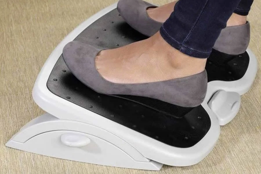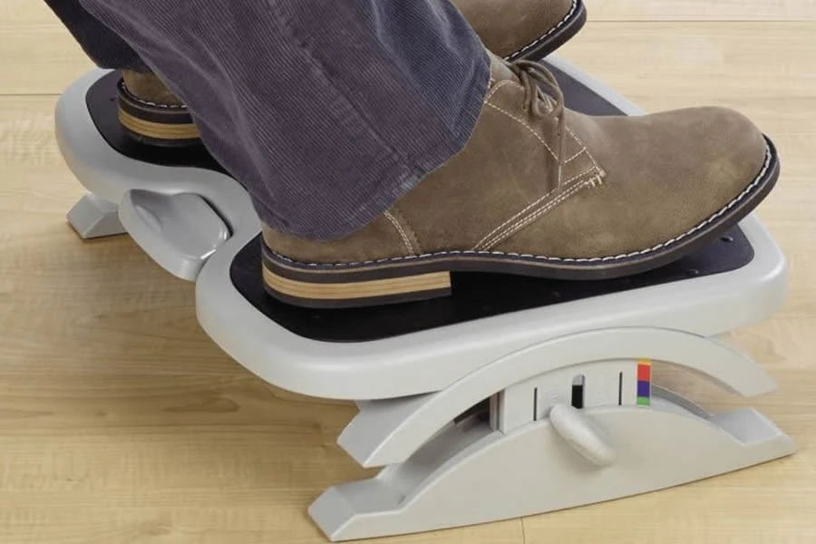 The footrest is designed with a sturdy and durable construction with a large, non-skid foot surface to provide added control. It is also equipped with a tilt angle that reaches up to 20 degrees, and the height can be adjusted between 9 and 13 cm.