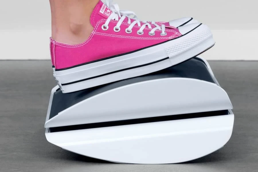 The black and white footrest is made of durable ABS plastic, TPE rubber and steel. It promotes healthy blood circulation and supports back and leg comfort while increasing productivity.