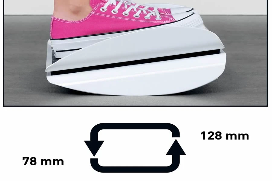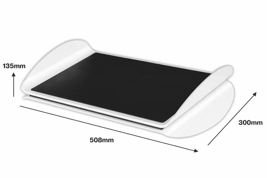 This Bobo adjustable footrest combines the benefits of a rocking and height-adjustable footrest, and the added value of a wide feet platform with a non-slip surface (with flat and curved options).