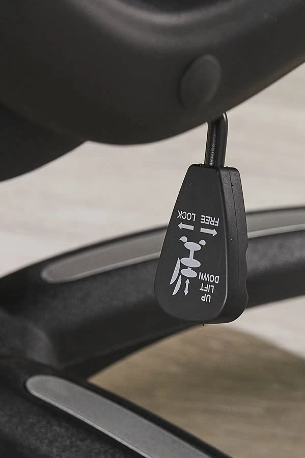 The high backrest is contoured to follow the user’s spinal shape. It can move easily from being in a locked upright position to a free-flowing reclined position with a simple pull of a lever.