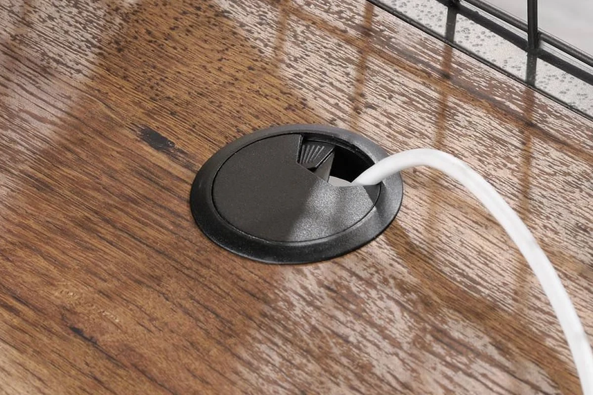 There is also a grommet hole for discreet cable management. The look is completed with a beautifully finished powder-coated metal frame, ensuring durability and life on the desk. This desk also benefits from a 360-degree finish, for effortless and versatile placement anywhere within your home or office working area.