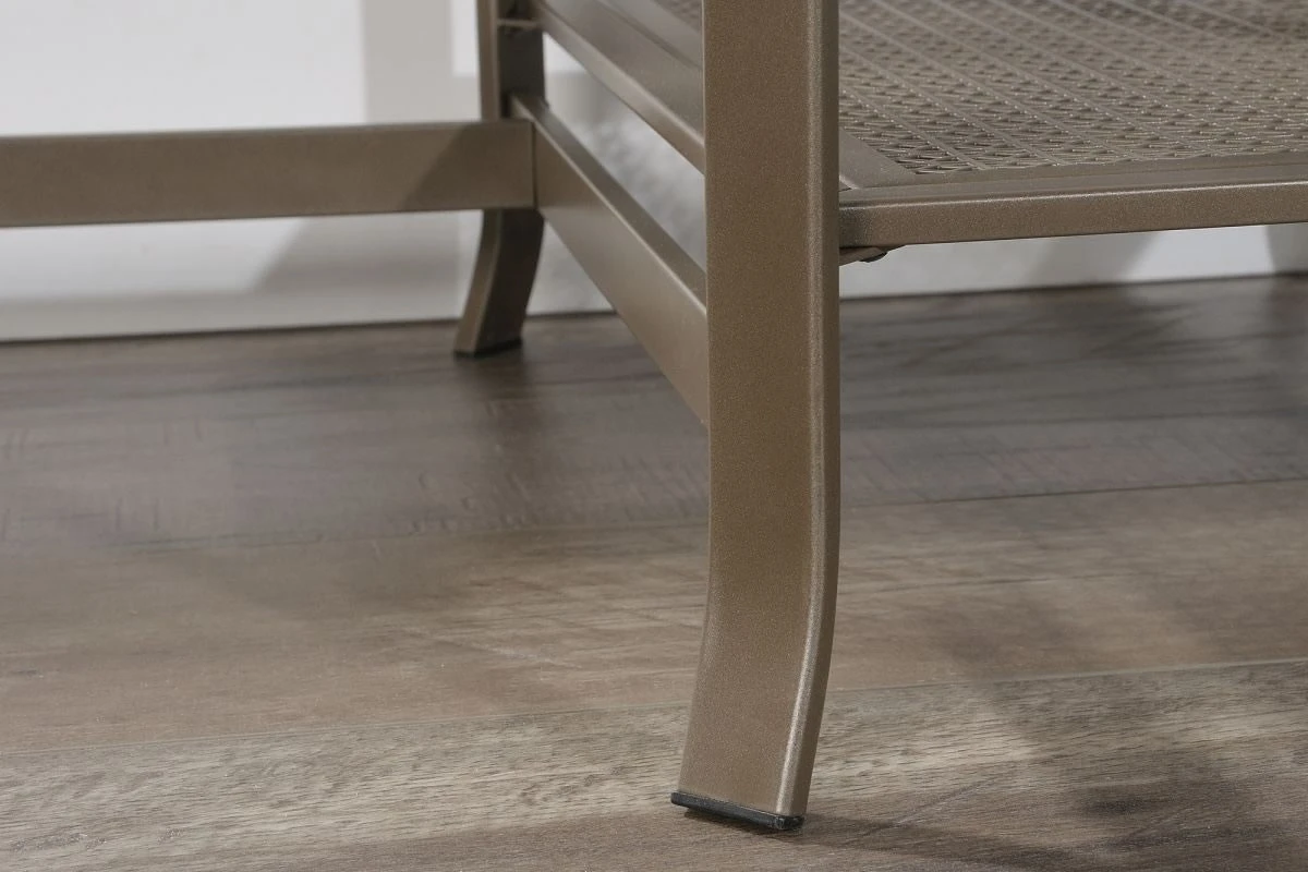 The durable satin taupe-coloured metal frame has perforated metal construction and can be assembled with the shelves on the left or the right, ideal for versatility and design options.