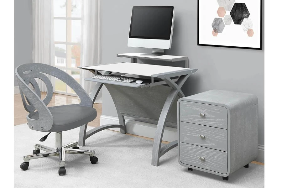 The Curve contemporary office chair features a stylish real wood veneer finish and polished chrome base, with an adjustable gas lift and generous seating area in faux leather.