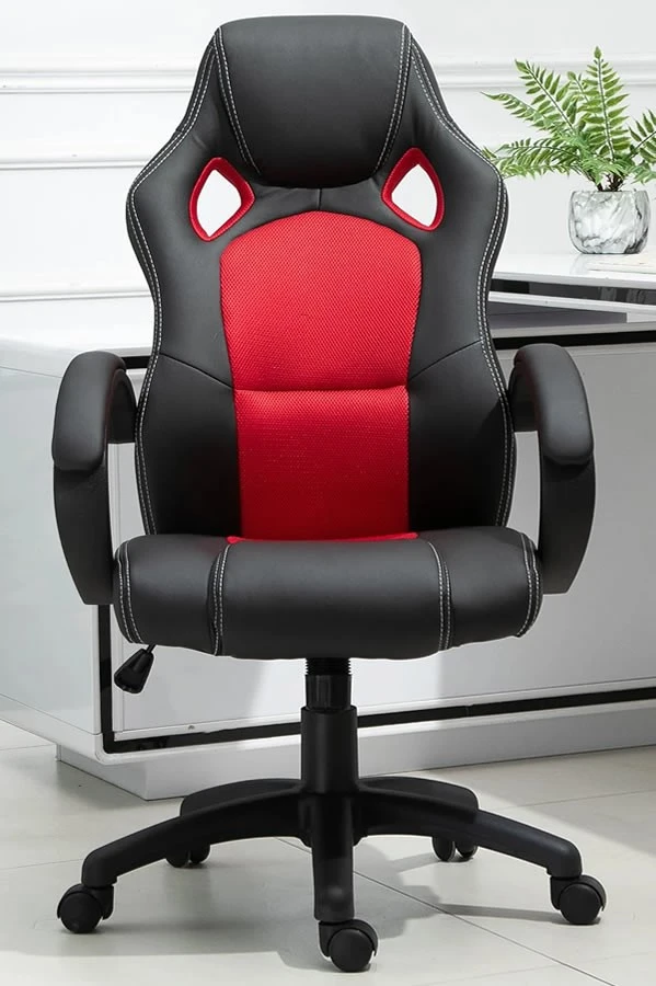 Work or play in comfort with this modern and stylish racing gaming chair with padded arms.