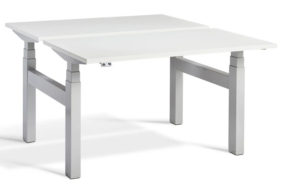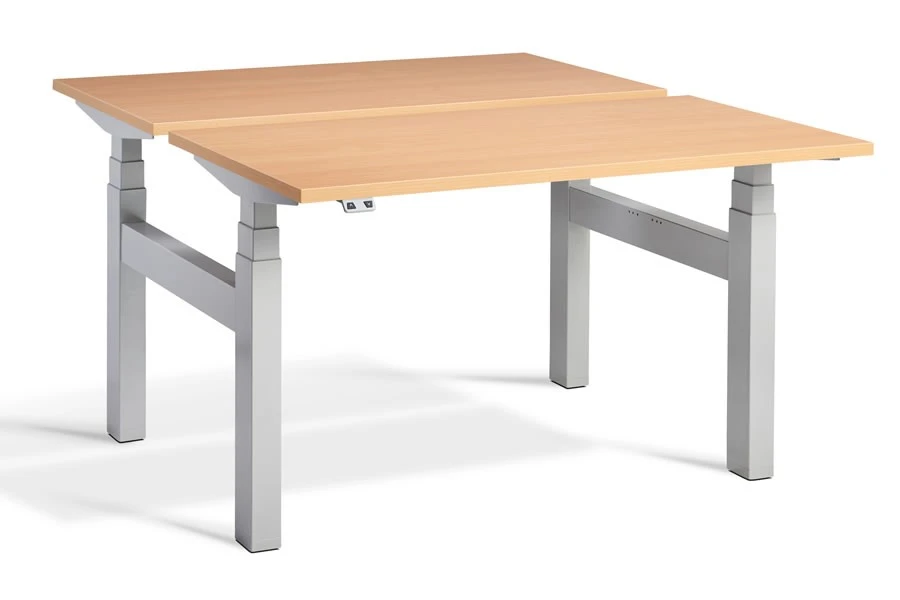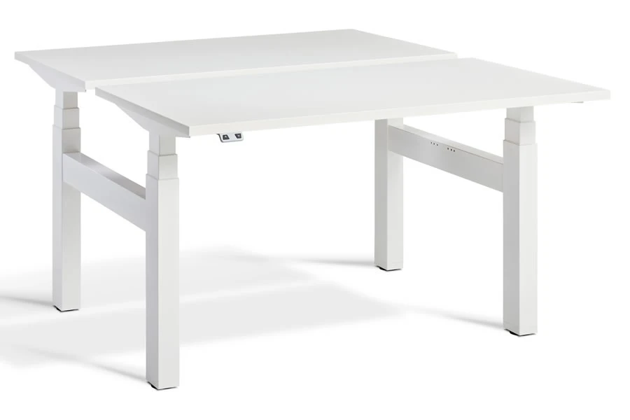 The Duo height adjustable dual user electric standing desk allows persons to work within a traditional bench system, with the facility to stand up to work at any time. The Duo frame is powered by four high quality motors, so each side can be used independently, with a separate soft-touch control for each.