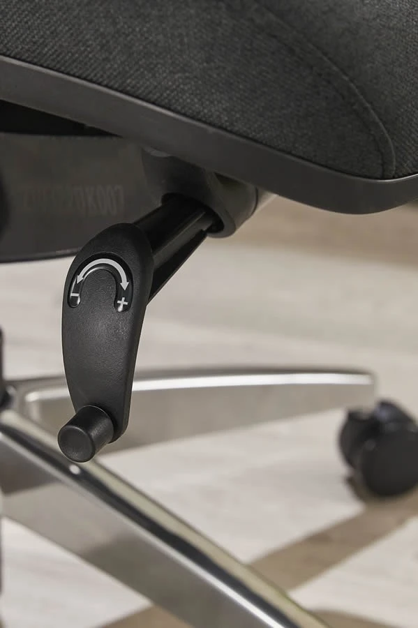 The seat is fitted with a seat slide allowing the user to adjust seat depth for longer legs and the backrest has adjustable lumber support.