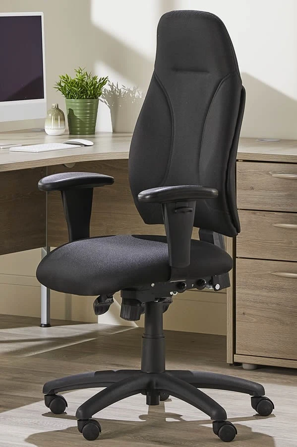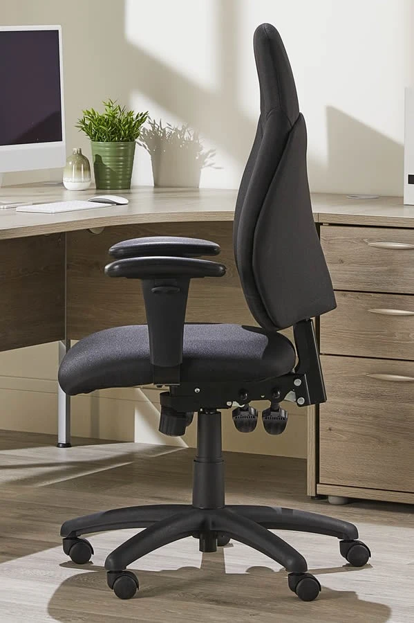 The Esme Ergonomic Fabric Operator Chair with height adjustable arms will suit a multitude of different height and size users.