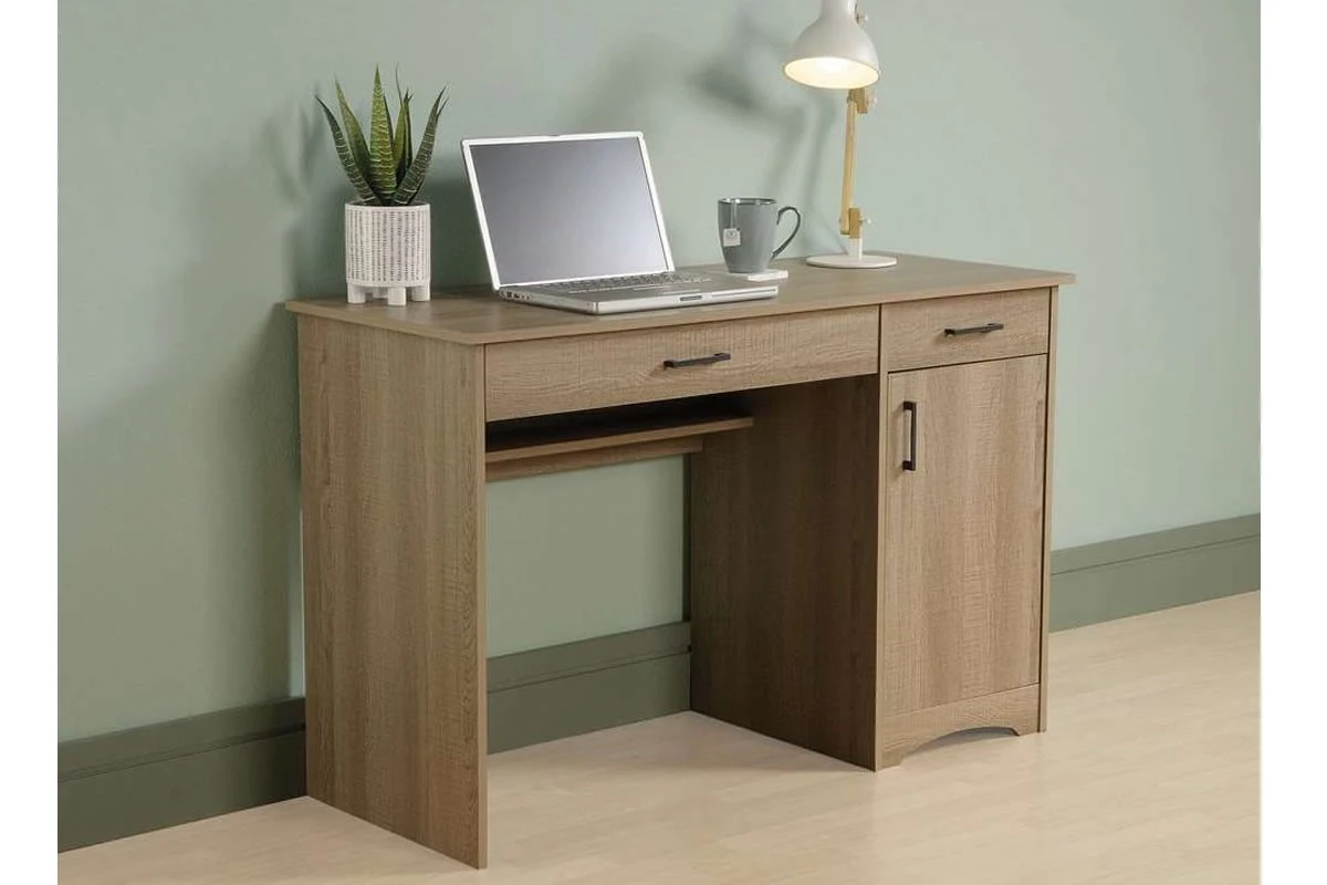 The Essentials Computer Desk in Summer Oak is a fantastically functional option for the home, student and university halls where space is limited but computer work is utmost.