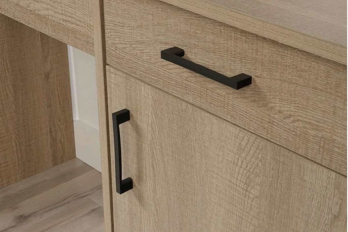 Other features include a cord management system with pass-throughs for tidiness. The beautiful summer oak tone of this desk makes it an ideal match for all rooms and office colour schemes.