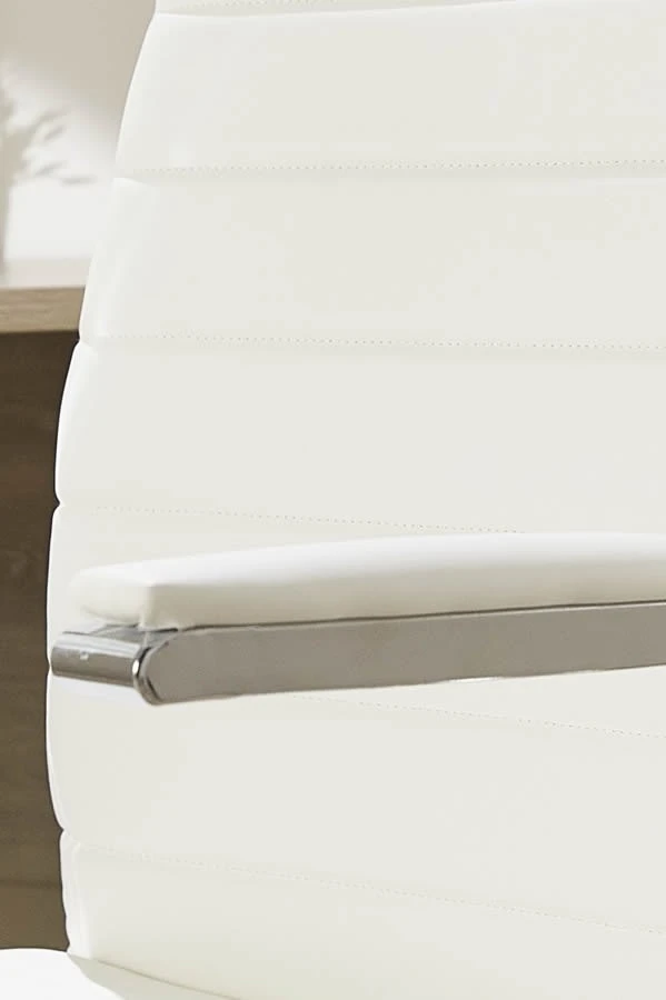 This stylish modern executive chair has attractive contrasting stitching with modern polished chrome arms. With a simple pull sideways lever under the seat, the back will recline freely and then simply push the lever back in and the chair will lock in the upright position.