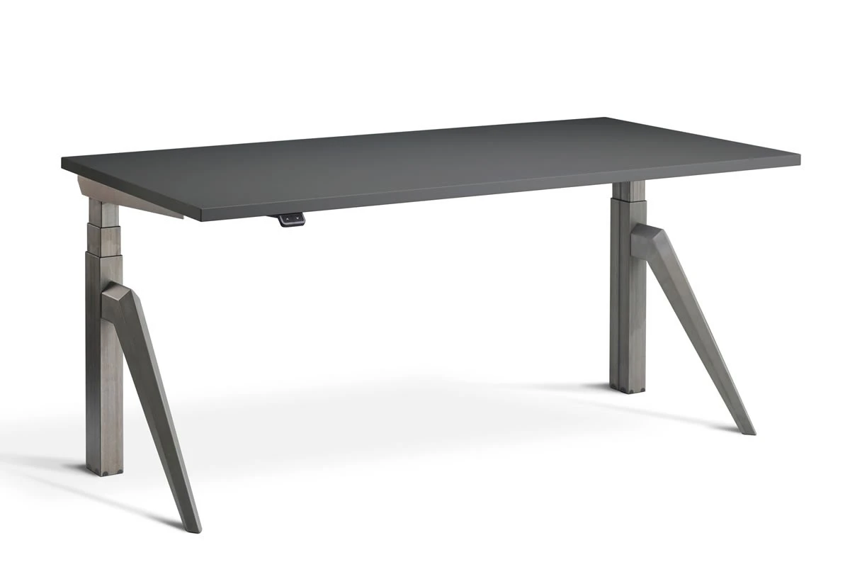 Available in a silver powder coat height adjustable frame finish, and 8 different desk top finishes in a choice of three desk top sizes.