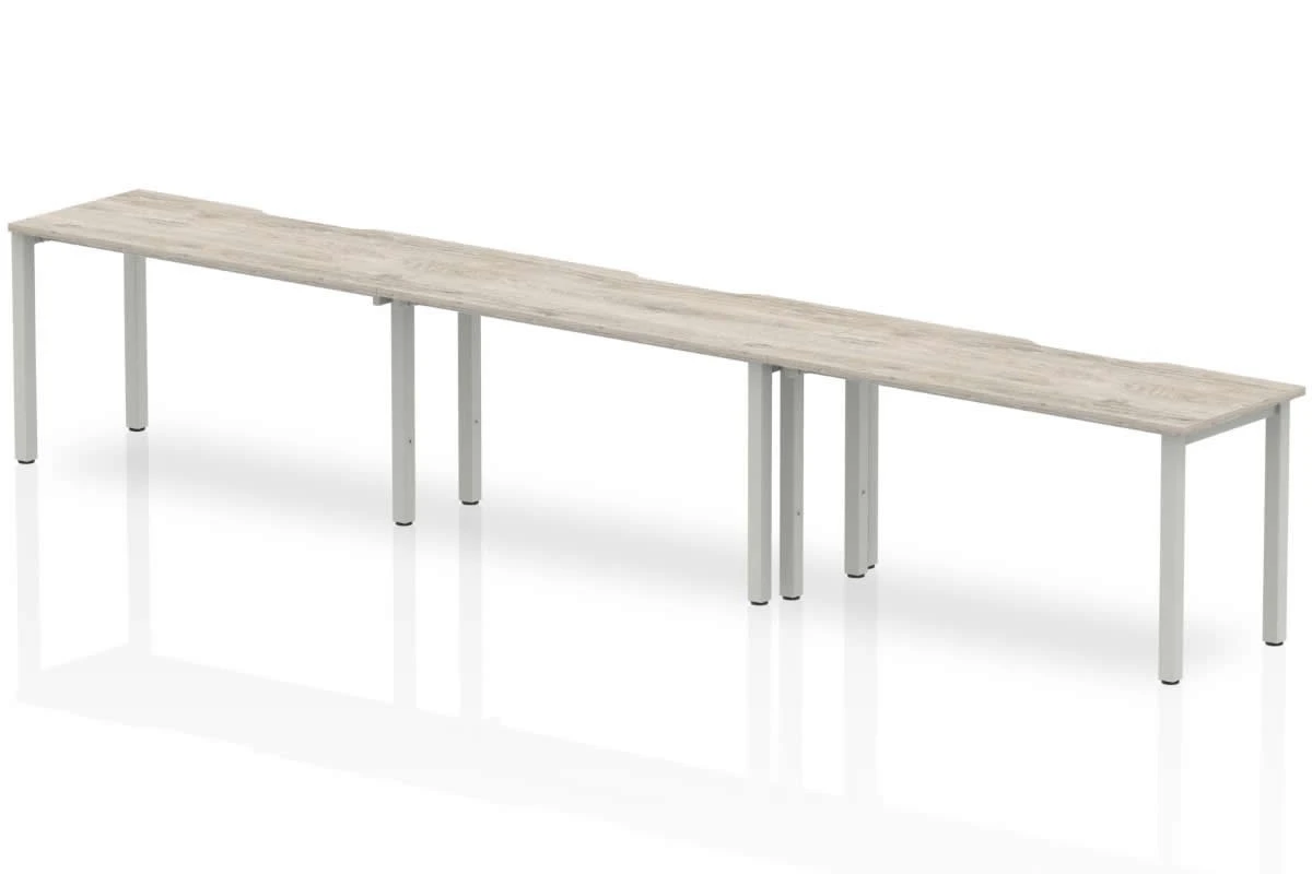 The Gladstone Bench desk range features a sleek and stylish design that will enhance the look and feel of your office. The desk top is made of a durable and scratch-resistant material that comes in a trendy grey oak finish. The leg frame is made of a sturdy and elegant silver steel tube that adds a touch of sophistication.
