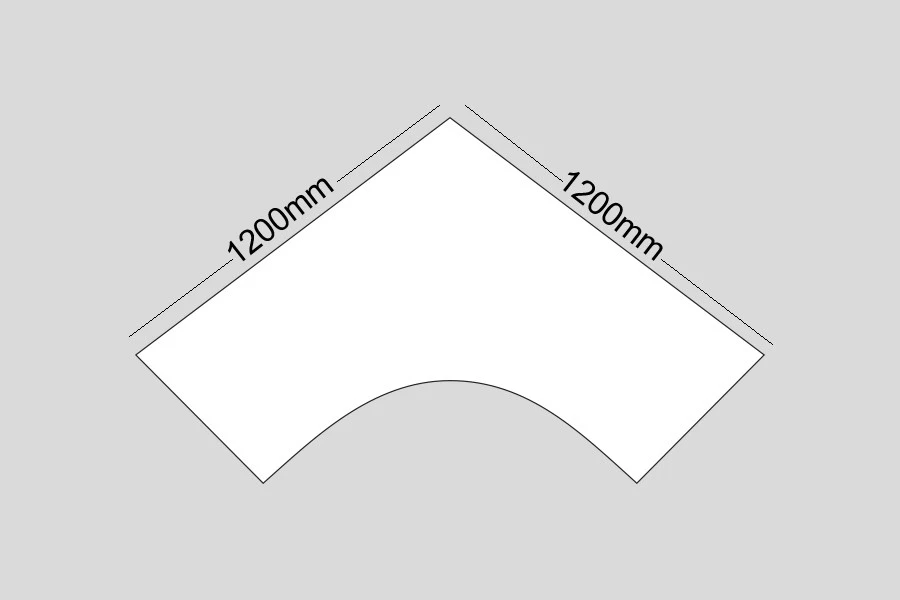- Depth – 600mm deep at narrowest end, 1200mm deep at crescent end