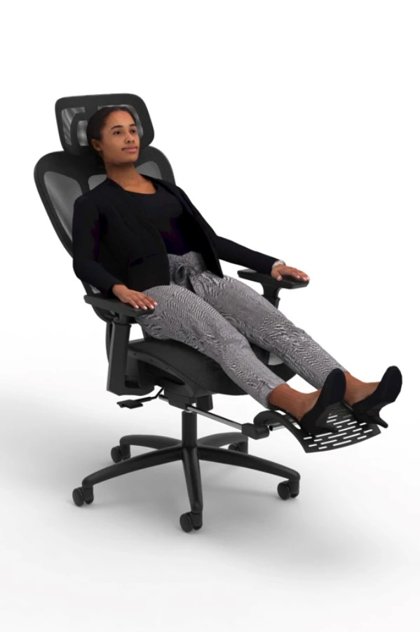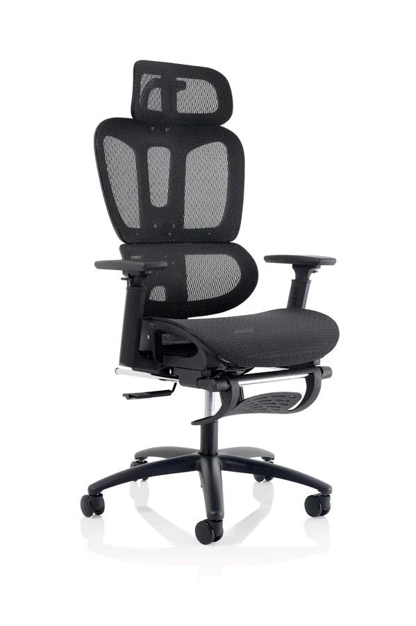 The Horizon is here to mark the dawn of a new era of operator seating this futuristic mesh back operator chair gives users the unique opportunity to kick back thanks to its extendable telescopic footrest.