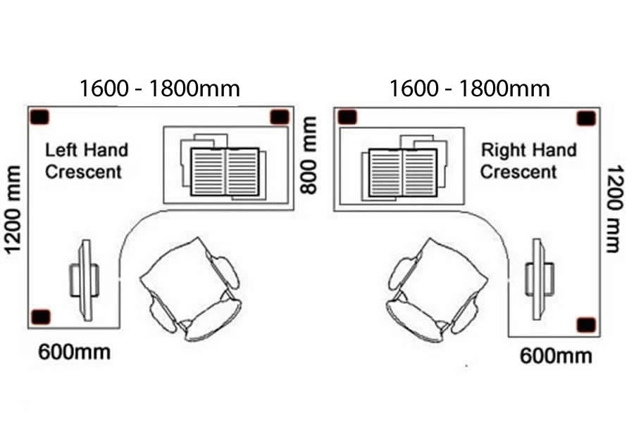 The Kestral Corner Desk has a unique crescent design that adapts to your preferences. You can choose from either a right-sided or left-sided configuration, depending on your needs and layout. The crescent shape provides an ergonomic environment for the user, allowing you to access your work area easily and efficiently.