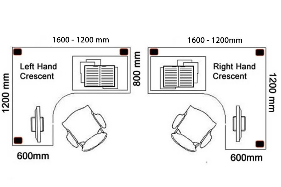 - Desk: 1600mm (W) x 1200mm (D) x 725mm (H)