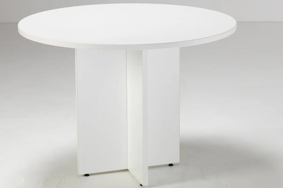 The Circular Office/Meeting Table in Warm Beech is a beautiful table that can fit any office space and style. It has a warm beech finish that is inviting and cozy. It also has cruciform legs that are sturdy and stylish. The legs have levelling feet that can adjust to any uneven floors.