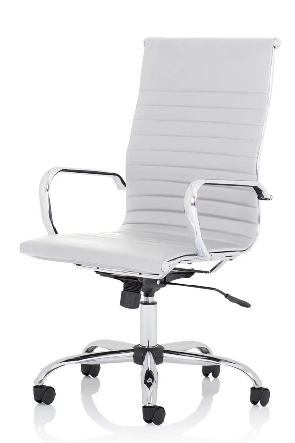 The classically designed Italian inspired design blends a mirror finish chrome finish with quality soft bonded leather in a crisp modern white finish, this classically styled chair is a truly eye catching piece of office furniture.