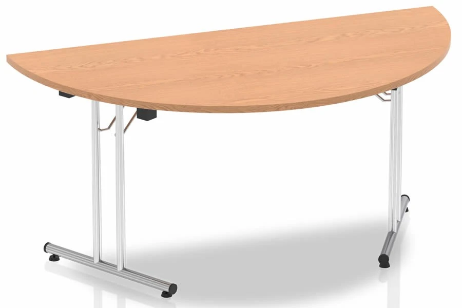Are you looking for a meeting table that combines elegance, functionality and convenience? Look no further than the Norton Oak semi-circular 1600mm folding table. This table is the ideal solution for any office space, as it offers a stylish and durable surface that can accommodate up to six people comfortably. The top is made of 25mm thick scratch-resistant oak, with 3mm radius edging that adds a touch of sophistication and protects the edges from wear and tear. The table is supported by either a steel cantilever leg in silver or grey, or a wooden panel leg, both of which are sturdy and stable. The best part is that this table can be easily folded and stored away when not in use, saving you valuable space and time. The table also comes with a 5-year manufacturing guarantee, ensuring its quality and longevity. The table is constructed with metal to metal fixings, which means that the joints are strong and will not loosen over time. This table is not just a piece of furniture, itβs a smart investment for your office.
