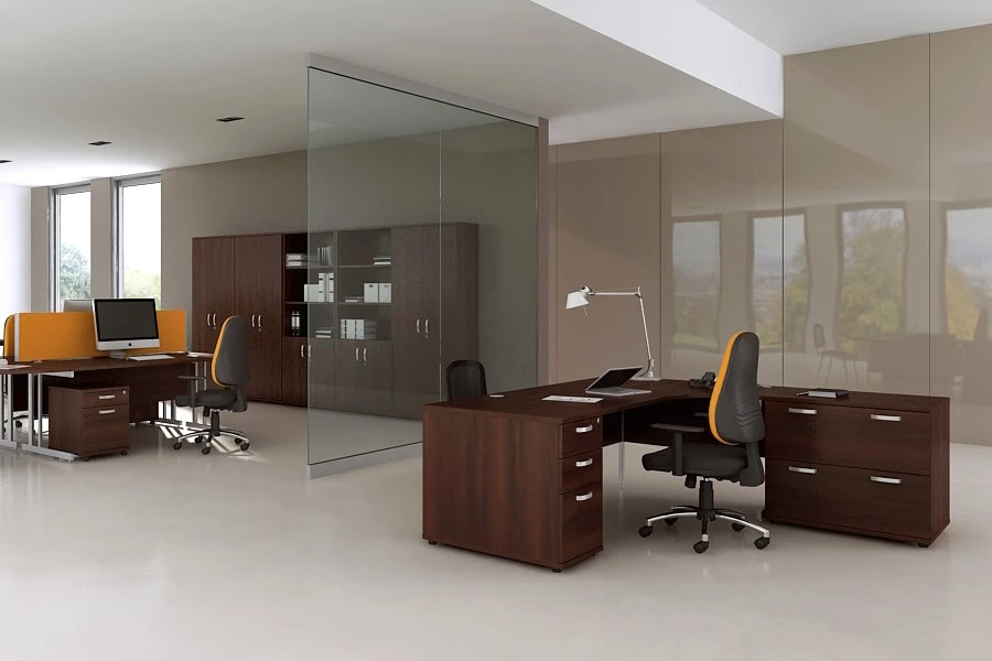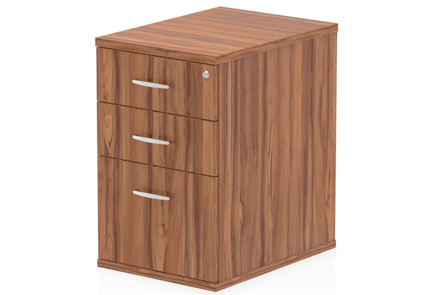 Enhance your office space with the Nova Walnut 3 drawer pedestal. This elegant pedestal has a walnut finish that matches your Nova Walnut desk. It also has a lockable feature that keeps your items safe and secure. It has two box drawers for your small items and one filing drawer for your papers. You can use either foolscap or A4 suspension files in the filing drawer. The pedestal comes with two keys, so you can access your drawers whenever you need them. The drawers have metal runners and handles that make them smooth and easy to use. The pedestal is also sturdy and practical. Itβs made of durable MFC board that is easy to clean and gives a professional look. It also has levelling feet that adjust to uneven floors. The Nova Walnut 3 drawer pedestal is the ideal storage companion for your Nova Walnut desk.