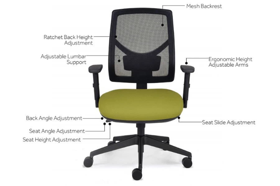- Height adjustable breathable mesh back>