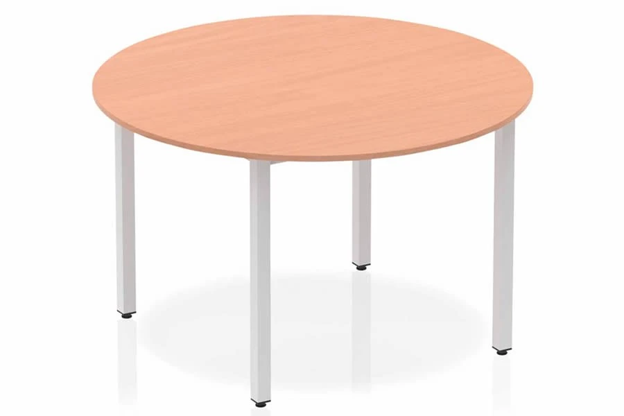 Transform your workspace with the Price Point meeting table, a sleek and elegant piece of furniture that blends modern design and functionality. This round table is perfect for collaborative work, with a spacious 25mm thick top that can accommodate laptops, notebooks, and coffee mugs. The silver-coated post leg adds a touch of sophistication and stability, while the 2mm abs protective edging and heat-resistant white melamine finish ensure durability and easy maintenance.