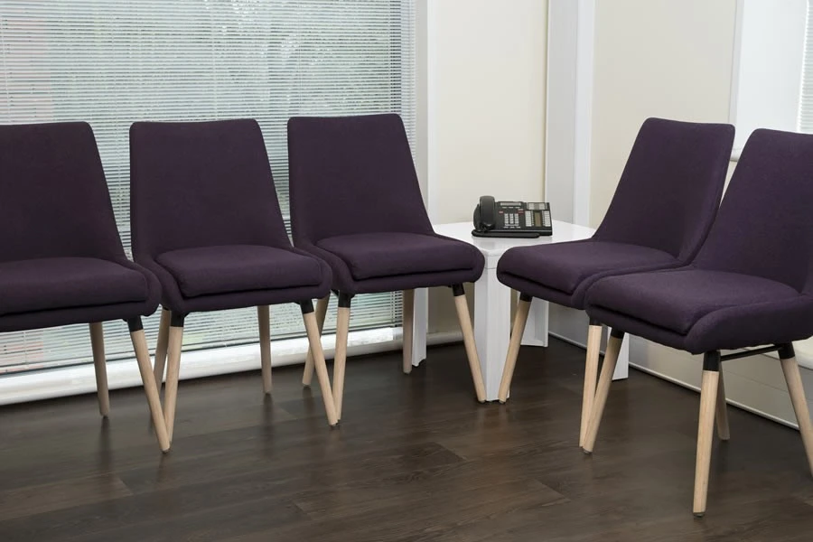 The Welcome reception chair is a contemporary styles upholstered reception chair in a soft brushed fabric with a choice of two colours consisting of plum or graphite finished with a sturdy oak tapered leg.
