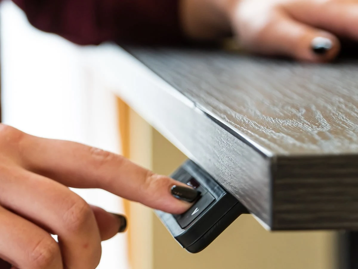 Features height adjustable desk control unit with easy-use soft-touch buttons.